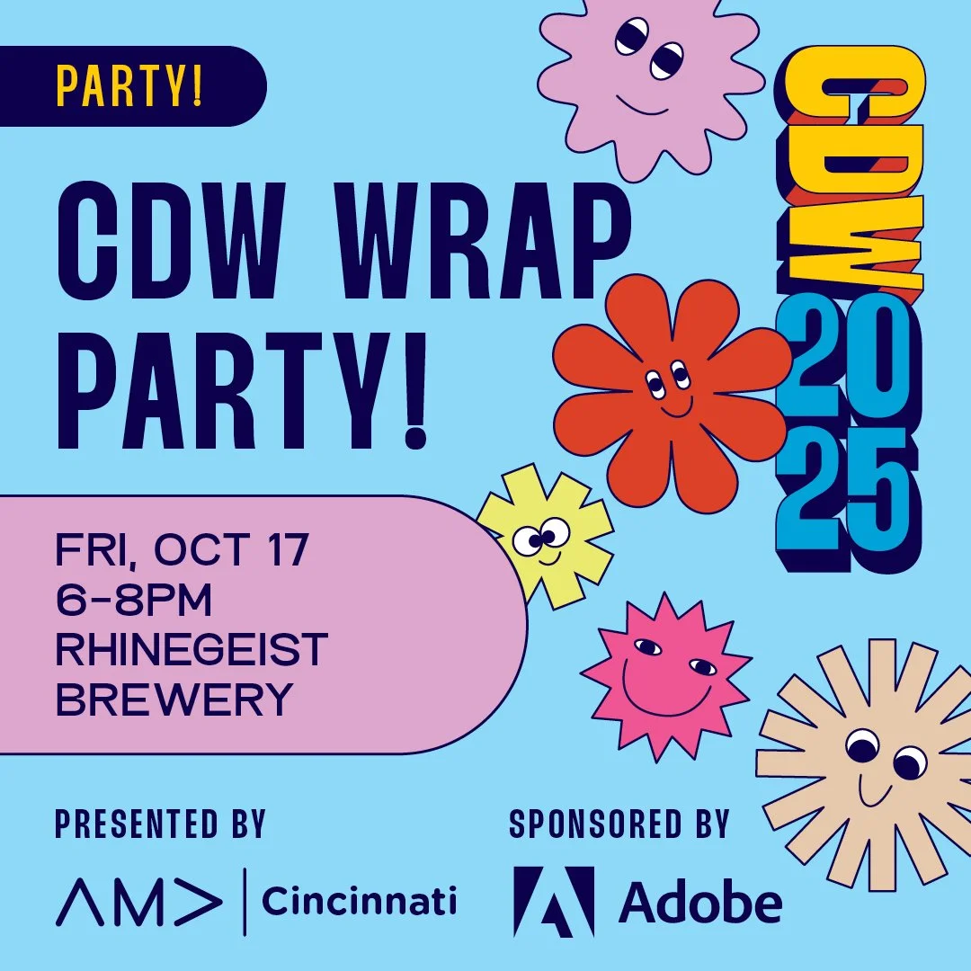 Let’s raise a glass to another incredible Cincinnati Design Week! Join us, along with our friends at AMA Cincinnati and our sponsor Adobe, as we close out a week of inspiring talks, workshops, and connections with one big celebration.